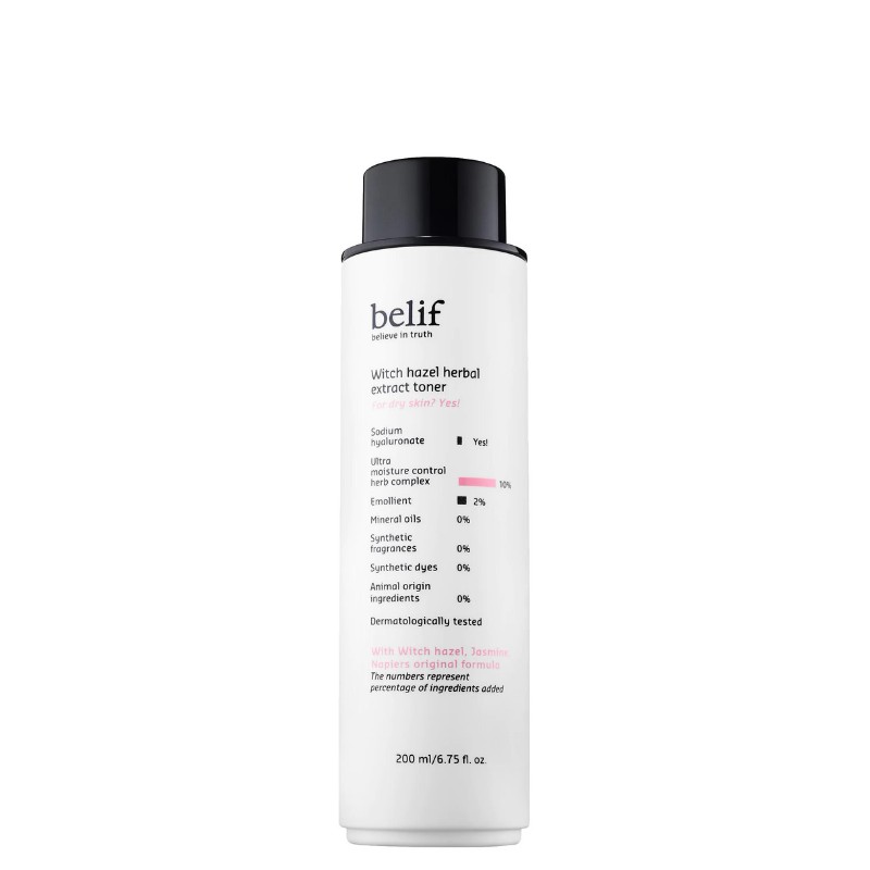 🌸 belif Witch Hazel Herbal Extract Toner is formulated with witch hazel to hydrate dry, dull skin, leaving it hydrated, soothed, and balanced after cleansing.