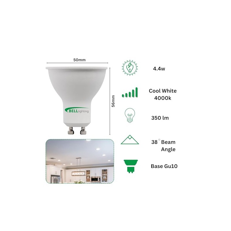 Bell Bell Lighting GU10 LED Bulbs C 350 lm Cool White 4000K C 4.4 Watts Beam Angle 38 Spotlight Bulb C 220-240 Volts Non-Dimmable Energy Saving LED Bulb C Pack of 5