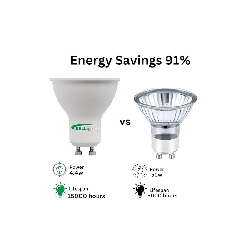 • Energy-efficient: These GU10 LED bulbs consume only 4.4 watts of power while providing bright illumination, resulting in significant energy savings compared to traditional incandescent bulbs.