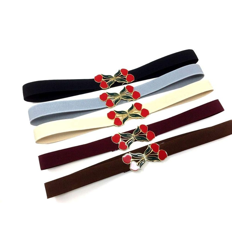 - Retro Cherry Blossom Buckle Strap Fashion and mature cute elastic strap