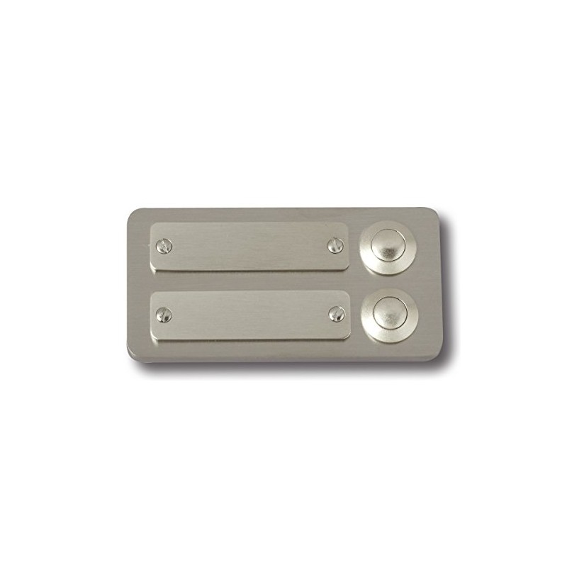 Material: stainless steel V4a, dimensions: 55 x 105 x 4 mm incl. Bell contact brass nickel-plated (item No. 70100) incl. Name plate stainless steel V4a item No. 72102) can be engraved, 2 rows, unilluminated, max. 24 V ~ 1 A