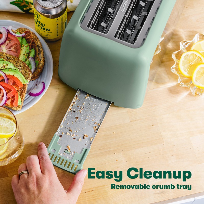 - EASY CLEANING? NO PROBLEM: Cleaning our slim toaster is a breeze! With a convenient drop-down crumb tray, you won't have to waste any time cleaning up after yourself. The elegant matte finish makes wiping down this bread toaster a piece of cake