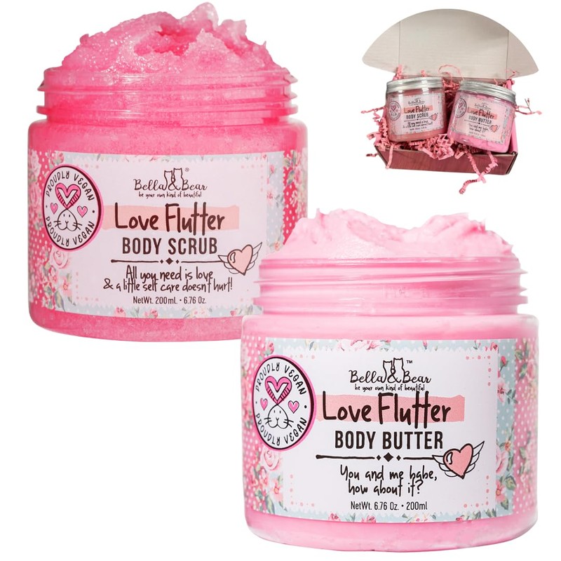 Bella and Bear Love Flutter Gift Set | Body Scrub | Body Butter | Valentines Gift for Her