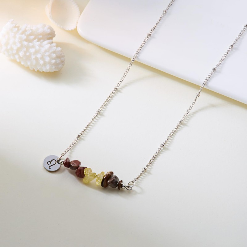 BELLA-Bee - Collar retro de piedra natural con constelación del zodiaco para mujer, colgante de horóscopo grabado, delicado colgante de acero inoxidable curativo grava astrología con tarjeta de deseos