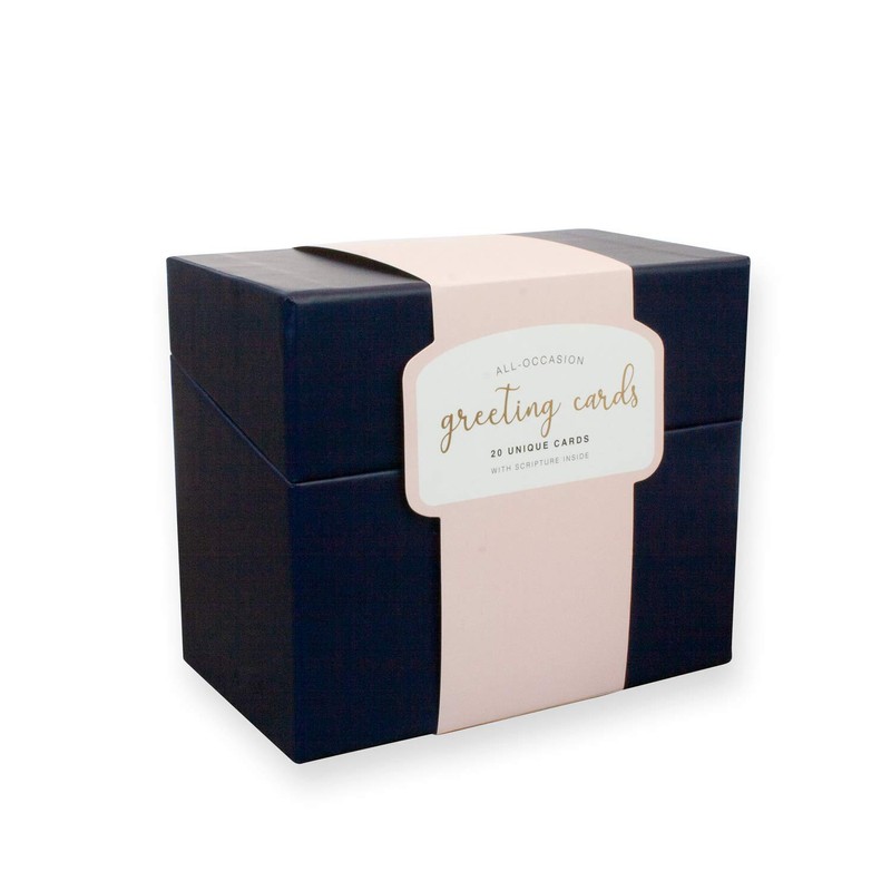 Bella Paper All Occasion Boxed Greeting Card Set with Card Organizer - Gold Emblem Design - 20 Assorted - Birthday, Thank You, Encouragement, Congratulations