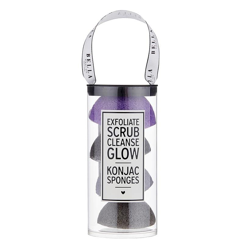 Bella Sleep + Spa Facial Self Care Exfoliating Konjac Sponge Set, 4-Pieces, Light Grey