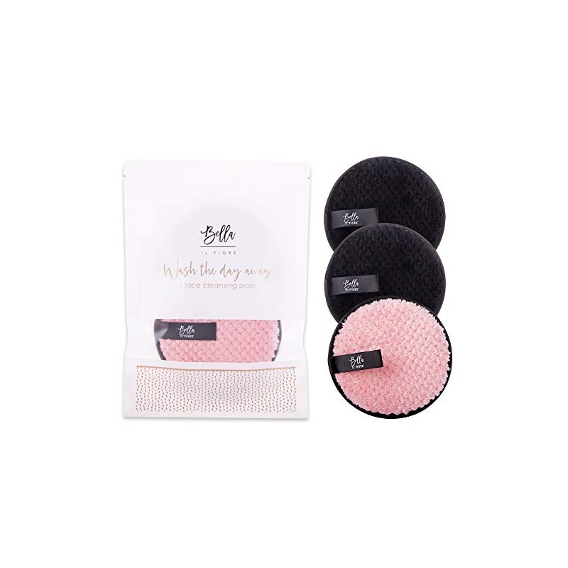 Bella Sleep + Spa Reusable Makeup Remover Pads Wash The Day Away Washable Cleansing Cloths, 3-Pack, Pink/Black