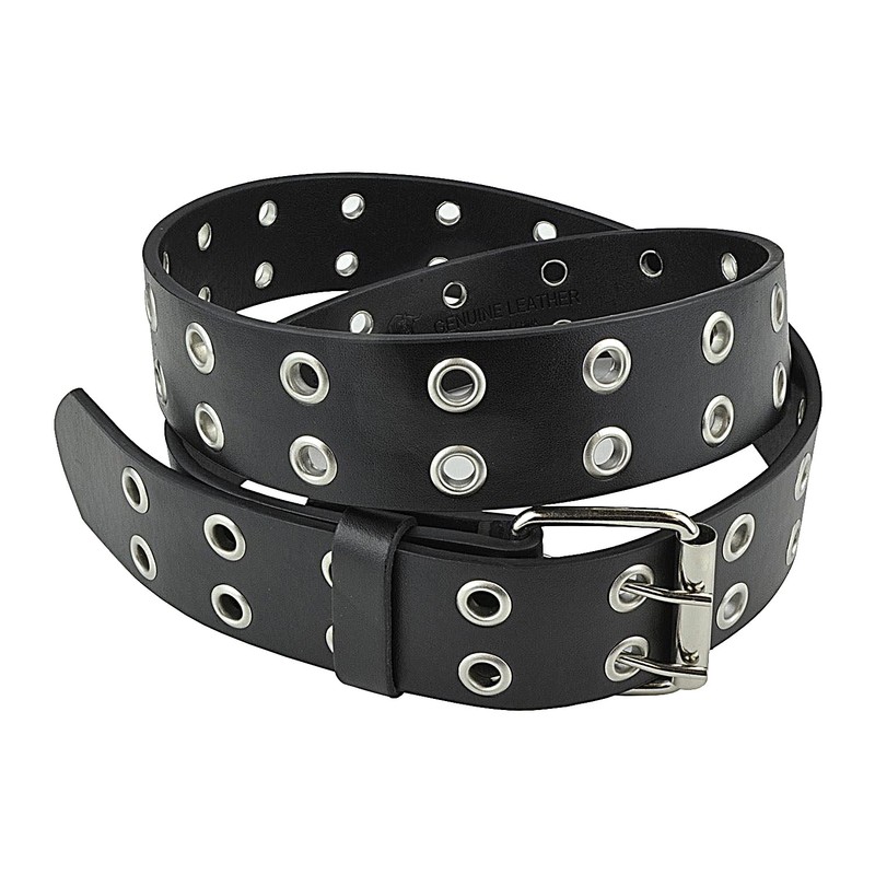 Belle Donne - Women's Double Grommet Leather Jeans Belt, Black , Size X-Large