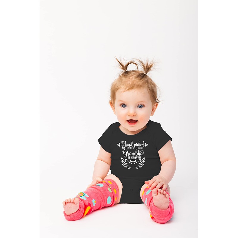 Belle Homie Hand Picked For Earth By Grandma In Heaven - Funny Baby Essentials Bodysuit - Newborn Boy Outfit (Newborn, Black)