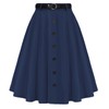 Belle Poque Skirts for Women Button Front Casual A Line Skirts Belted High Waist Midi Skirt with Pockets Navy Blue S