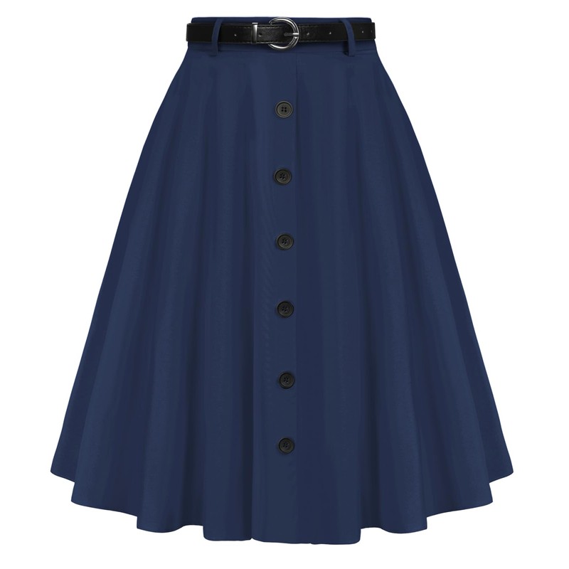 - Retro Design: This flowy midi length skirt boasts seven decorative buttons at the front, a detachable belt and pockets, allowing you to store small items like phone, keys into it. It features a high waist and an A-line design, all in a classic solid color