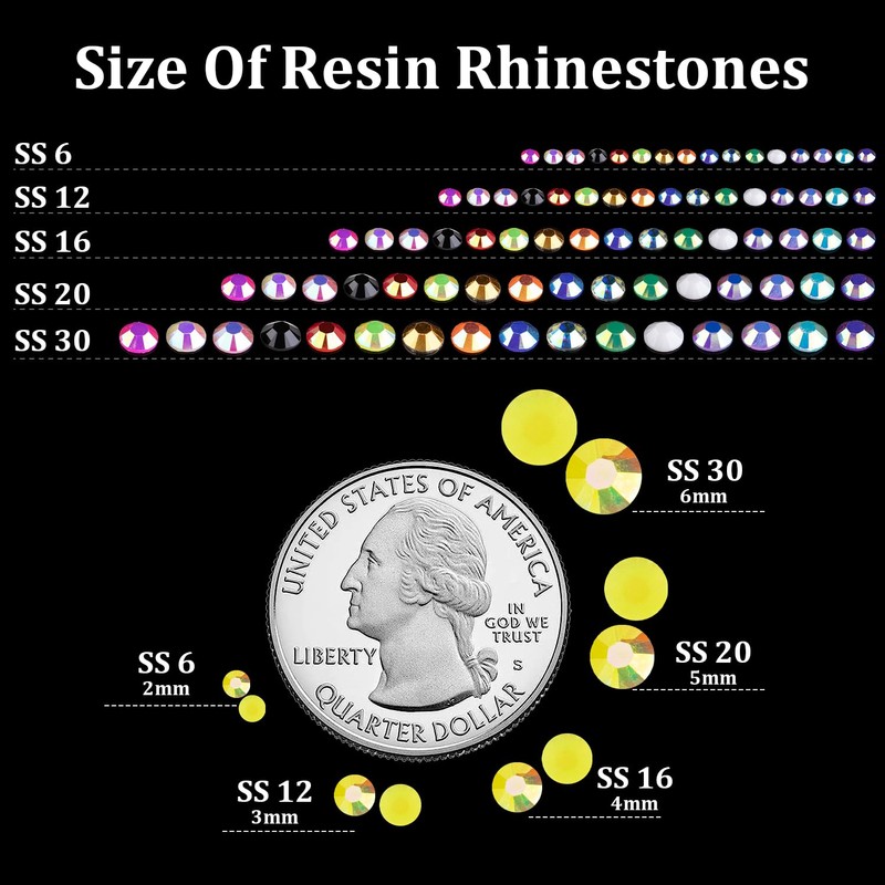 - WIDE APPLICATION -- These sparkling iridescent resin rhinestones are perfect for creating dazzling looks. Use them for face makeup, eye makeup, body art, 3D nail art or bedazzling DIY crafts like shoes, tumblers, mugs, bottles, phone cases, popsockets, scrapbooks, photo frames, diamond paintings, greeting cards, bags, glasses, guitars, keychains, hats, masks, hair clips, bracelets, wristbands, clothing, wedding dresses, and more. Apply it to what you want to bling!