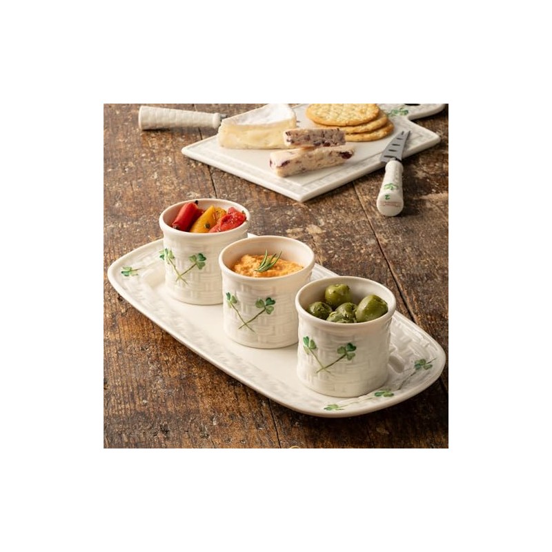 - FUNCTIONAL AND VERSATILE: The Belleek Shamrock Tapas Set includes an appetizer tray and three serving dishes for parties, offering a convenient solution for serving a variety of snacks or appetizers at your gatherings.