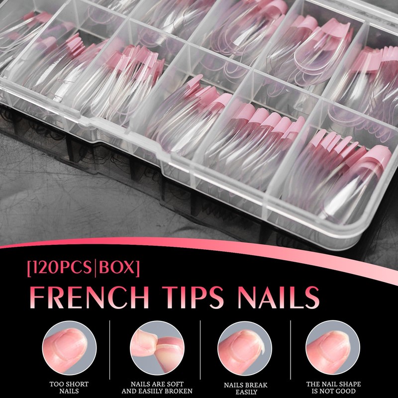 - 【Premium Gel Press on Nails】Our French long nail tips are made of upgraded premium ABS material, which is strong and enough to wear on your fingers, not easy to break. False nail tips can be used on their own for a fresh look or paired with other colors and accents to create your unique style