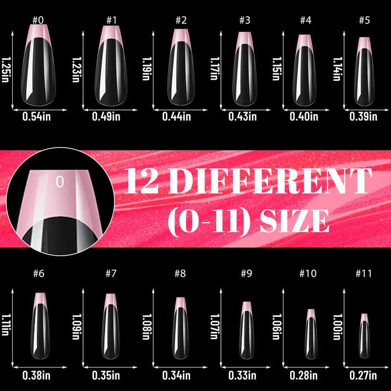 French tip nails offers 12 different sizes with 10 nails of each size that fit most fingers. Numbered from 0 to 11 to make gel press on nails easy to select and distinguish. Suitable for both nail technicians and beginners. Also a great present for friends on special occasions, like weddings, party, Christmas, Halloween, etc