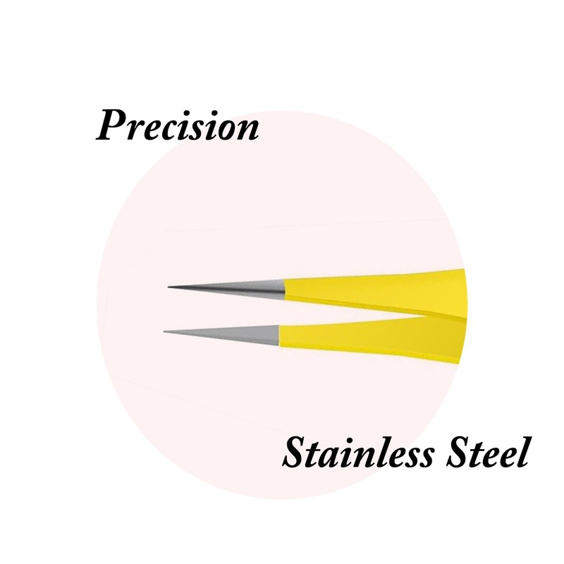 Bellesante Precision Tweezers - Precise Grooming - Stainless Steel - Ingrown Hair - Eyebrow Shaping - Woman and Man - Hobby Tweezer - Chin Hair - Splinters - Yellow