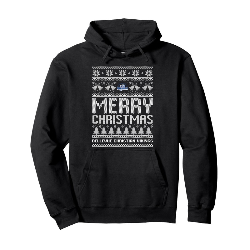 Bellevue Christian Vikings Logo Merry Christmas Ugly Sweater Pullover Hoodie