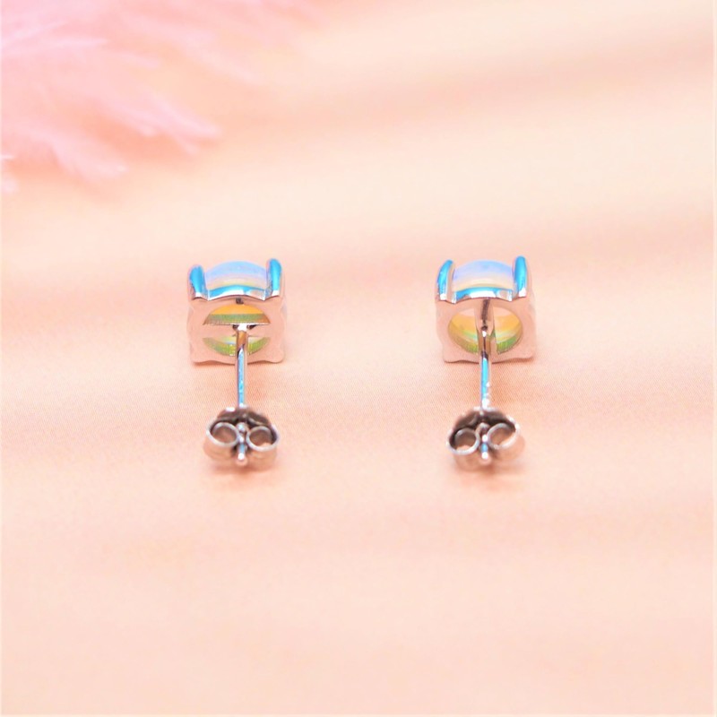 - Parameters: stud earrings for women, item diameter 6.5 mm, weight: approx. 0.85 g. Material: moonstone, 925 sterling silver. Other gifts: brochure, a flannel bag, jewellery cleaning cloth.