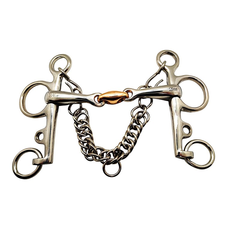 Bello-Equine Stainless Steel Pelham Bit with Copper Lozenge Center - 5" / 125mm Mouth