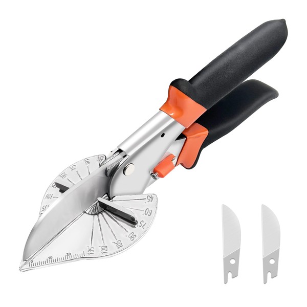 BELLOYON Multi Angle Miter Shear Cutter, Hand Tools for Cutting Soft Wood, Plastic, Moulding Trim, Quarter Round Cutter, Adjustable at 45 To 135 Degree With 2 Spare Blades