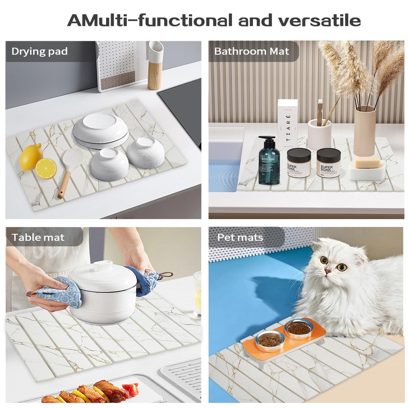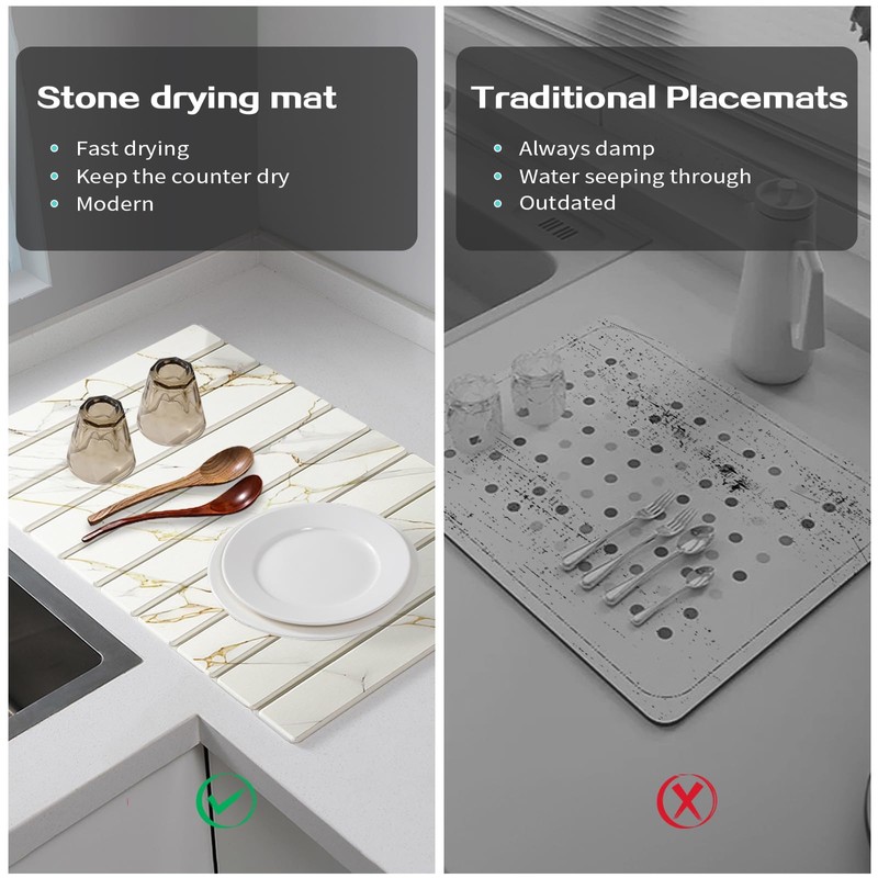 - Collapsible Space-Saving Design: Measuring 24"x16" unfolded, the foldable stone dish drying mat rolls to 4.3" width for drawer storage for stability and maintenance