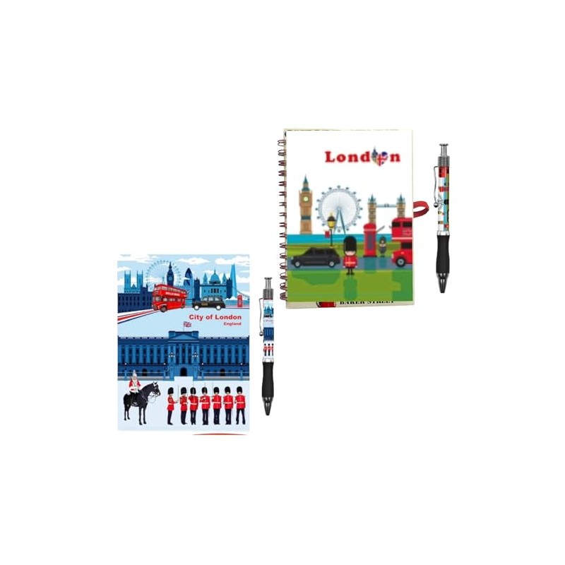 Bells Box 2 x A6 London Souvenirs Notebook and Pen - England British Stationary Gift Set - London Iconic Landmark Notepad with Pen