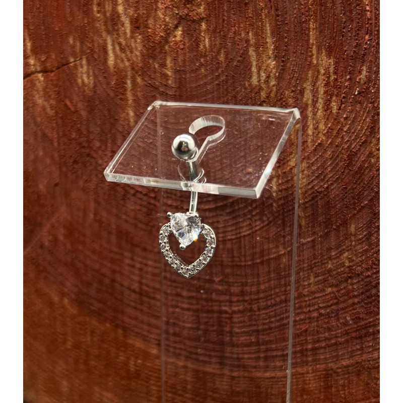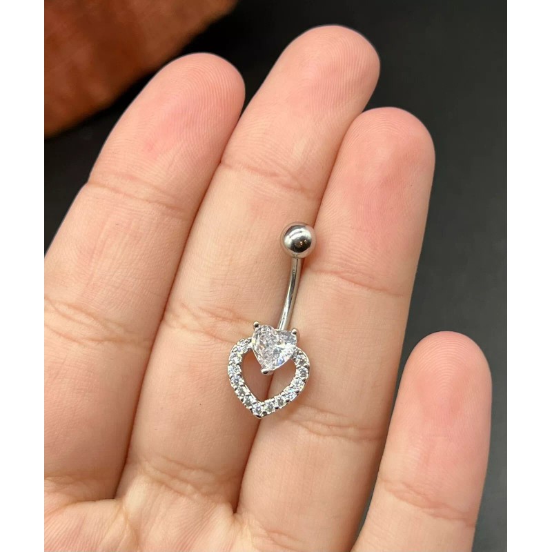 - This 14-gauge double heart belly button ring beautifully combines romance and sparkle. Crafted from durable stainless steel, it features two intertwined heart-shaped designs. Both hearts are adorned with sparkling cubic zirconia stones, which catch and reflect light, adding a dazzling effect. The stainless steel ensures long-lasting wear and a comfortable fit, making this piece both elegant and practical. Perfect for those who love classic, romantic jewelry, this belly button ring adds a touch of sophisticated charm to your body piercing.