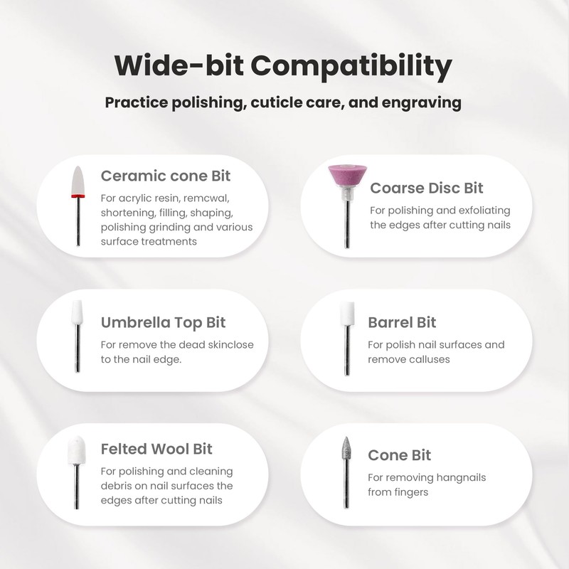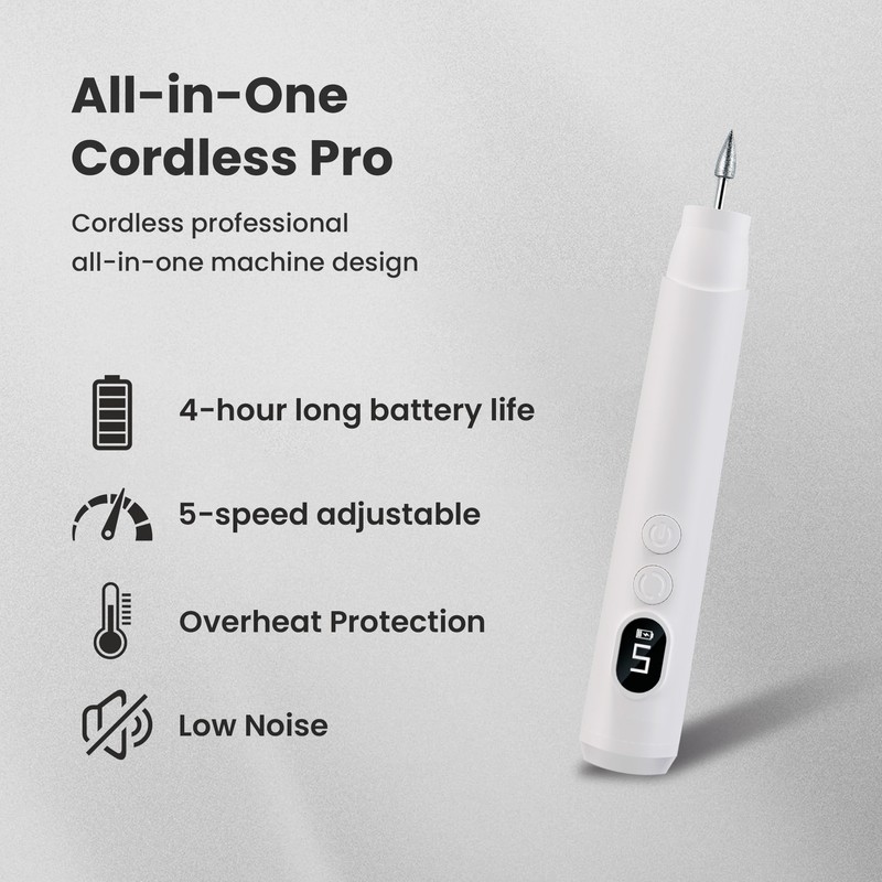- Compact & Lightweight for Easy Handling: At 60.5g with ergonomic grip, this cordless nail drill ensures steady control for beginners. Includes a protective cover for secure storage and travel. Ideal for practicing basic techniques comfortably