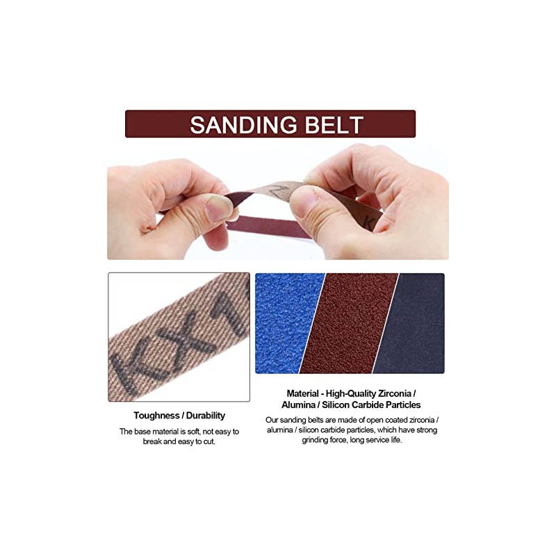 - Durable material: these sanding belts are made of open coated zirconia, aluminium oxide and silicon carbide particles, which are wear-resistant and not easy to break.