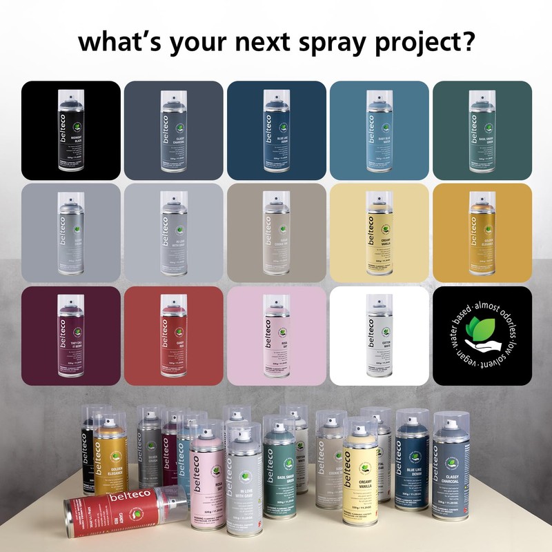 - PREMIUM QUALITY MADE IN GERMANY: Enjoy consistent color application and very good opacity with Belteco, the vegan, Made in Germany spray paint known for its fast drying and superior coverage.