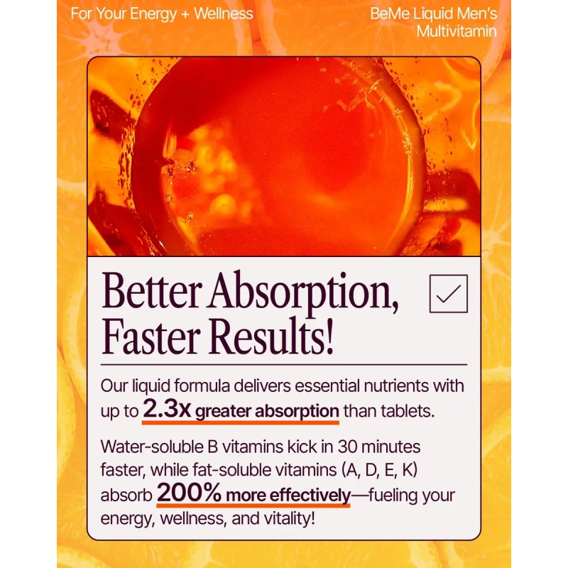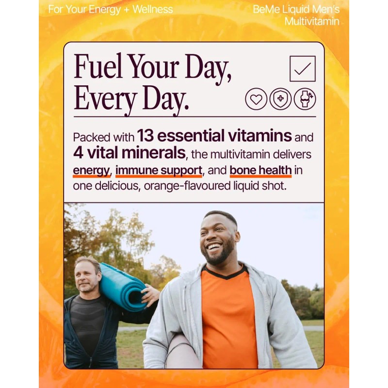• Comienza tu día con fuerza y enfoque usando multivitaminas líquidas BeMe Be Vitalized para hombres, con 13 vitaminas esenciales y 6 minerales en un shot con sabor a naranja refrescante.