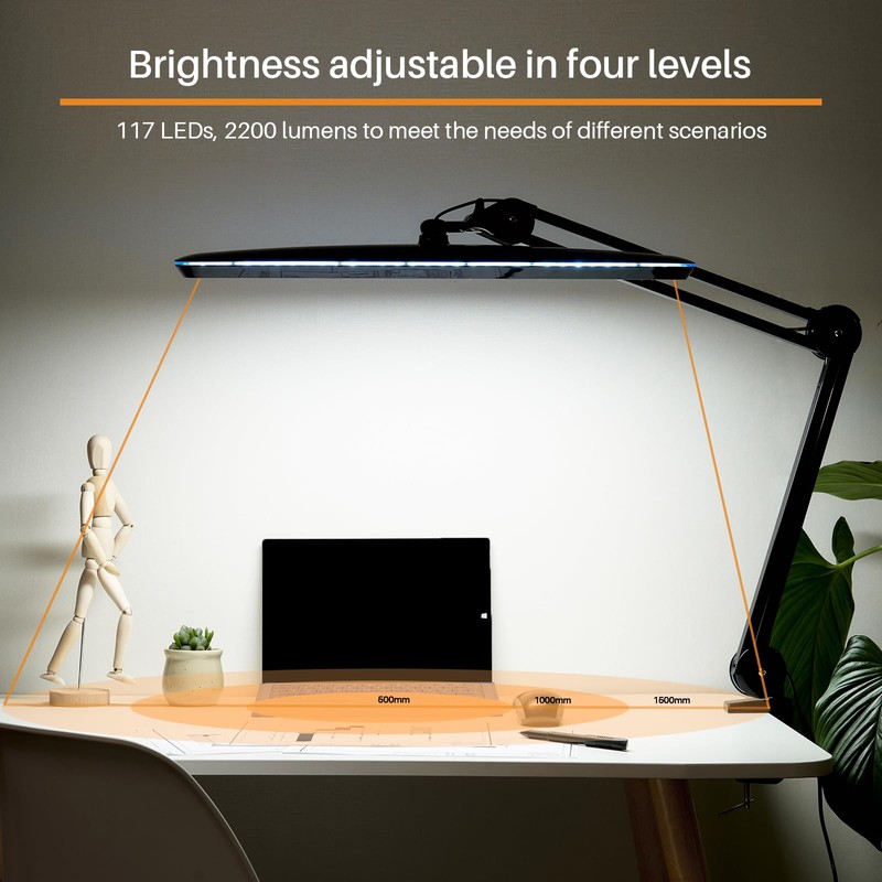 bemelux Spacious Design Task Lamp with Clamp, Bright 182PCS LEDs, 24W 2200 Lumens Adjustable Brightness and Color Temperature, 23 Inch Lamp Head Work Lamp(Black, CCT)