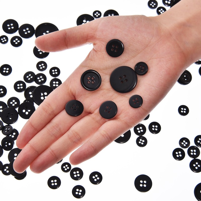 - Quantity: approx. 600 pieces (200 g) of round sewing buttons, and they are all black and 4 holes, abundant quantity for meeting your daily needs
