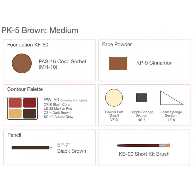 - Creme Foundation, Creme Contour Palette(includes Rouge, Highlight, Shadow, and Lip Color), Face Powder, Eye Pencil, Flat Brush, Powder Puff, Sponge Applicator, Stipple Sponge.