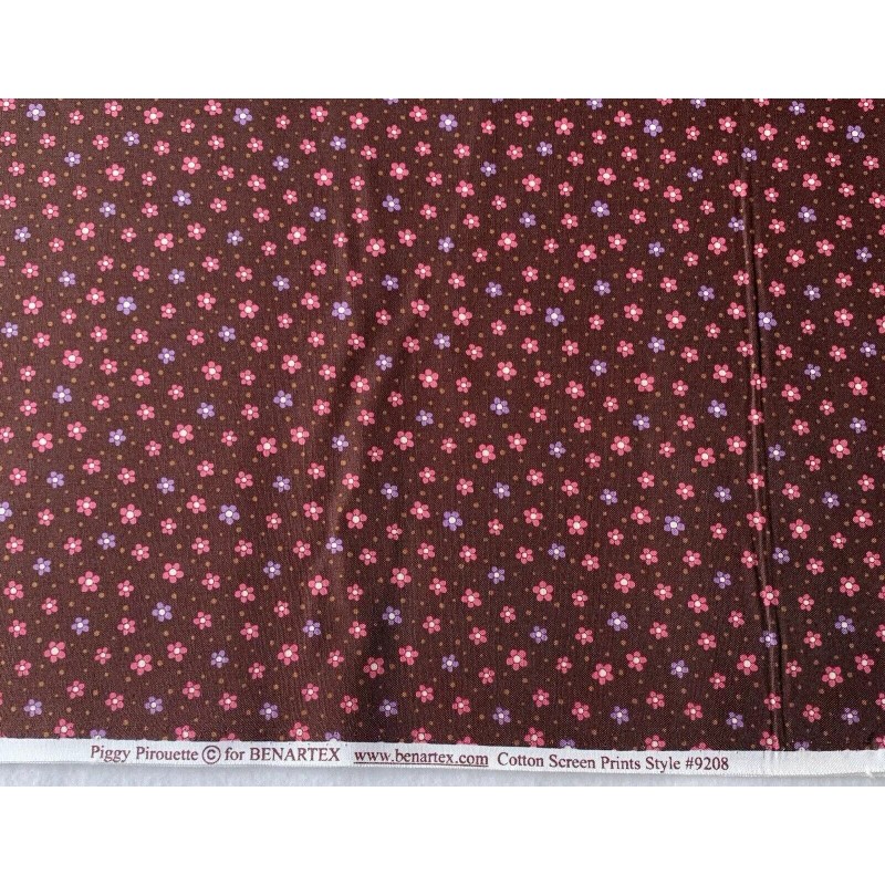 Benartex Piggy Pirouette Floral & Polka Dot Fabric By Benartex Peach Lavender Brown BTHY