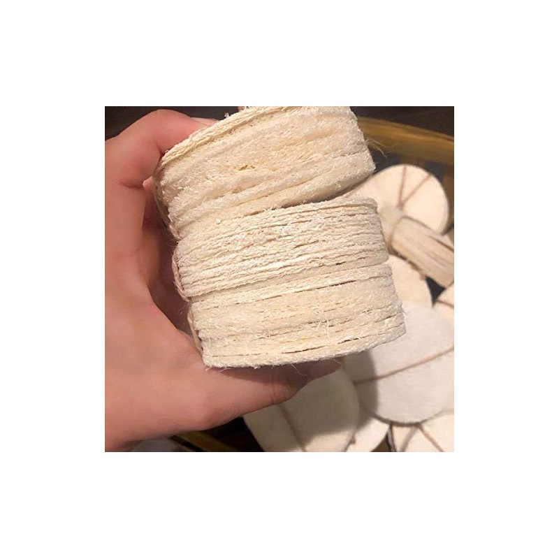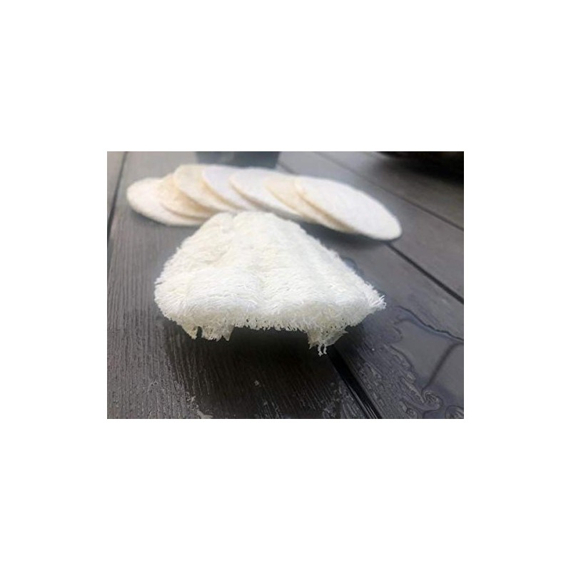 Material: 100% Natural Loofah Size: 3-inch diameter, really thin, and triple its size