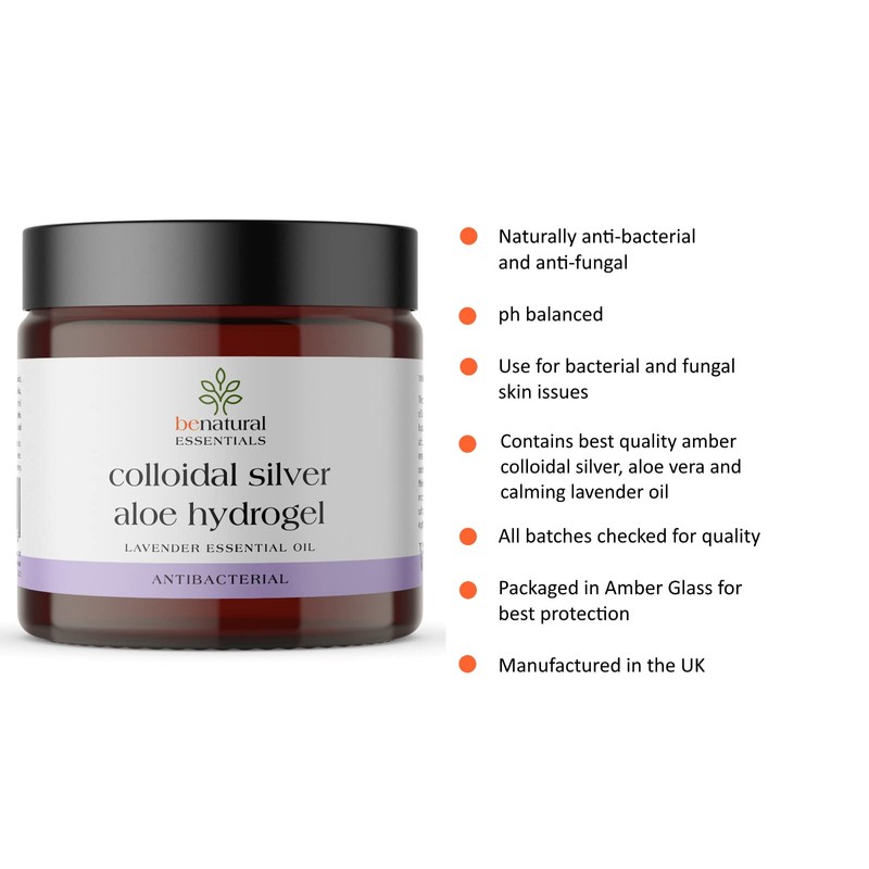 - Premium Quality Colloidal Silver Moisturising Hydrogel with Concentrated Aloe Vera Juice and Calming Organic Lavender Essential Oil