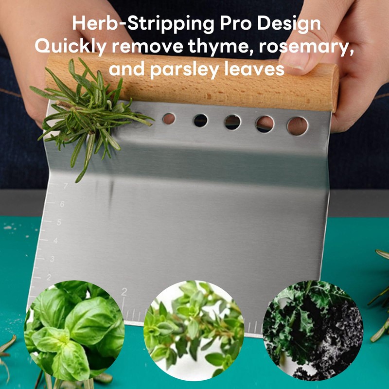 Bench Scraper Kitchen Herb Stripper,Dough Scraper Cutter,Food Scraper Tool Kitchen Stainless Steel with Measurement Markings