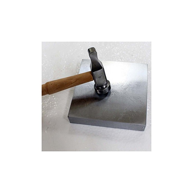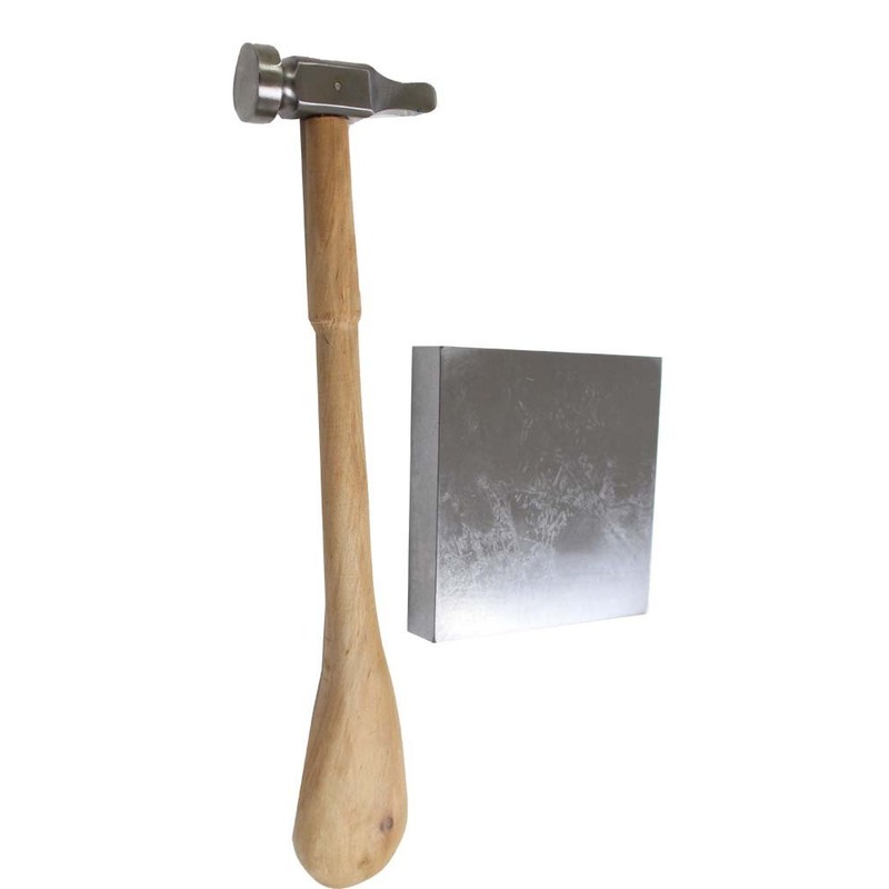 This kit was specially created for the jeweler's or artist's work bench. The block is made of hardened chrome vanadium steel, a material chosen for its long lasting durability. The block measures 4" X 4" X 3/4". The hammer is a steel head chasing hammer, with a solid wood handle. * Hammer Is 10.5 Inches Long Overall, With A Steel Double-sided Head Measuring 2.5 Inches Across * Hammer's Forged Steel Head Has One Slightly Curved, Round .75 Inch Striking Surface * The Other End Of Hammer's Head Has One Slightly Curved, And Elongated, 35 Inch Striking Surface * Hammer Handle Is Made Of Solid Hardwood, With A Bulbous Handle To Give You A Full Grip * Block Is Made Of Hardened Chrome Vanadium Steel For Years Of Reliable Use