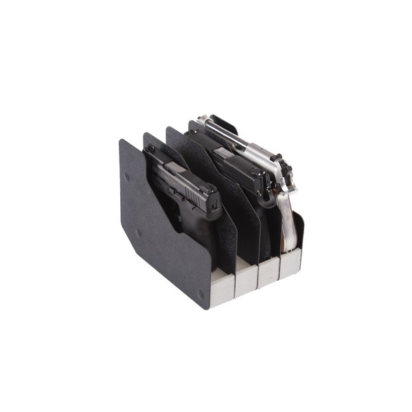The BenchMaster 4 Gun Pistol Rack provides easy, organized storage for up to 4 pistols. The semi-rigid Kydex dividers protect your gun’s finish and are water and oil resistant. The antimicrobial foam cushioning is both water- and shock- resistant. Give your guns the protection they deserve, and organize your safe for when you need quick and easy access. The sturdy materials and quality construction eliminate the need to remove your pistols to transport them for cleaning. The spaces for both the grip end and the barrel slide of the gun are 1.5” wide. This is ample space for any single stack or double stack magazine pistol.