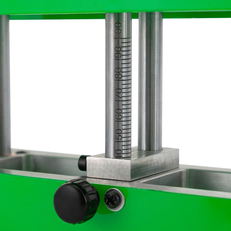 ❶ Lock the lift plate to the shaft leg at the desired bend height to accurately align all drum depths.