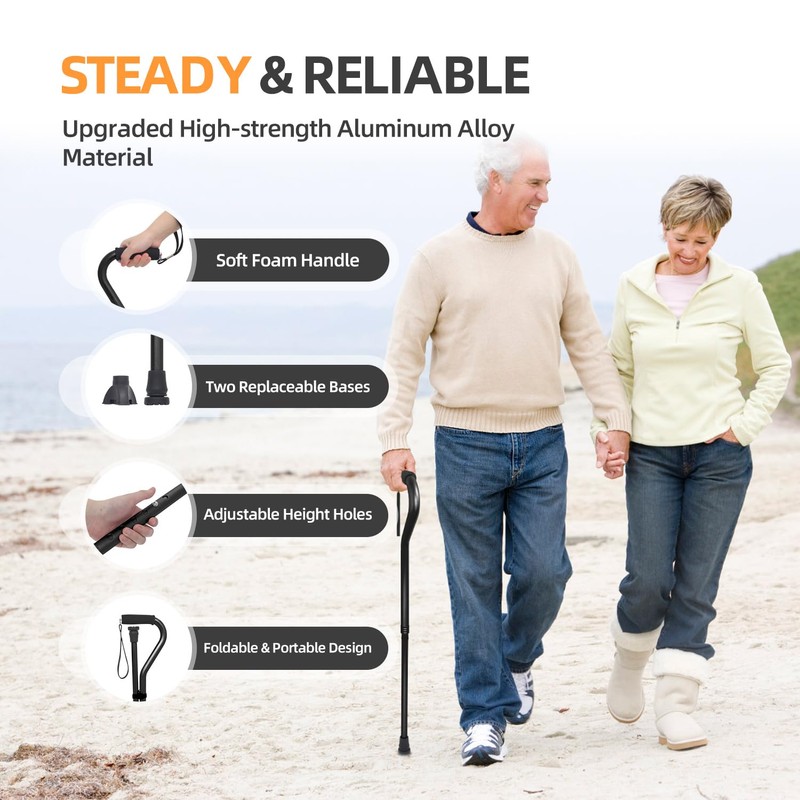 BeneCane Walking Cane for Men & Women Adjustable Cane with Offset Soft Cushioned Handle -Portable Lightweight Sturdy Mobility Walker Aid for Elderly, Seniors Collapsible Cane