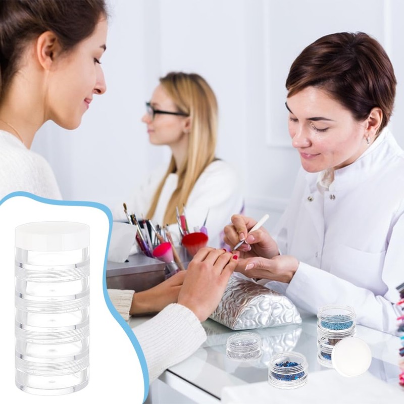 BENECREAT 10 Set 5 Stackable Cosmetic Containers, Bead Storage Containers, Bead Screw Stacking JarsSmall Cosmetic Sample Bottle for Glitter Painting Lotion