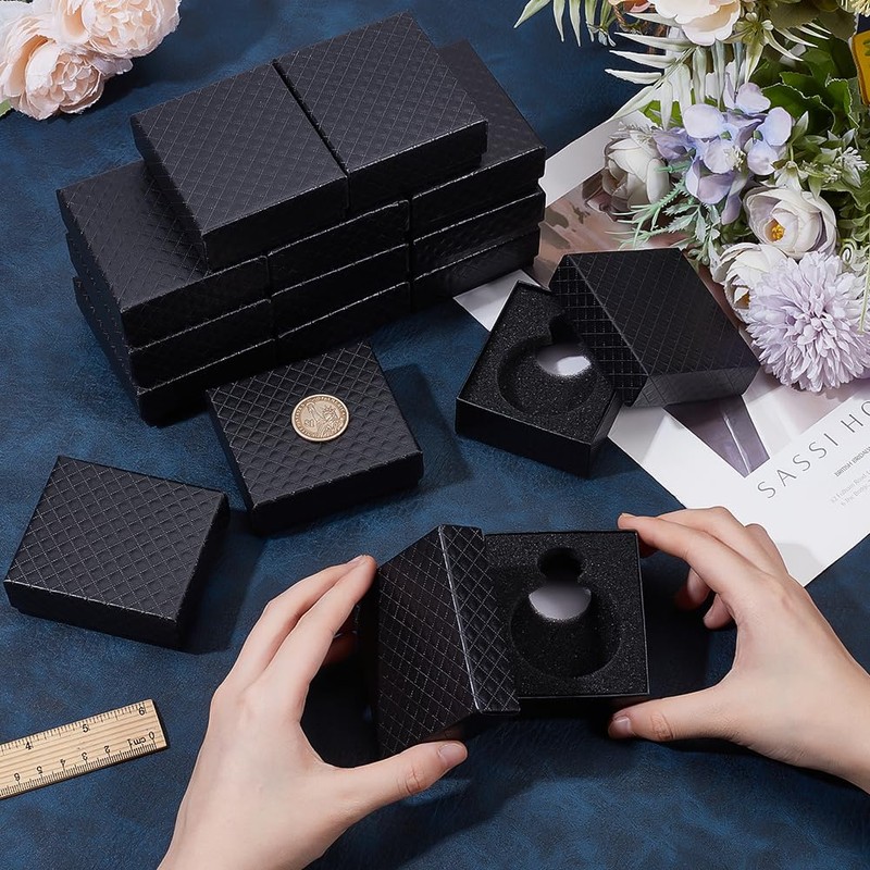 BENECREAT 16個セット 懐中時計ディスプレイボックス 時計ケース 8x7x3cm 懐中時計ホルダー スポンジ付き ペーパーケース ブレスレットのギフトボックス 蓋付き 小物入れ ジュエリー用