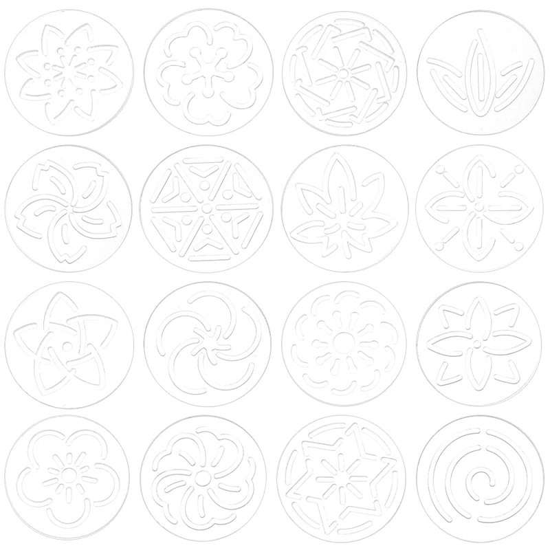 BENECREAT 16Pcs Acrylic Sashiko Stencil, 2.3inch Round Flower Acrylic Embroidery Tool Drawing Line Template for Hand Quilting and Embroidery, 3mm Thick
