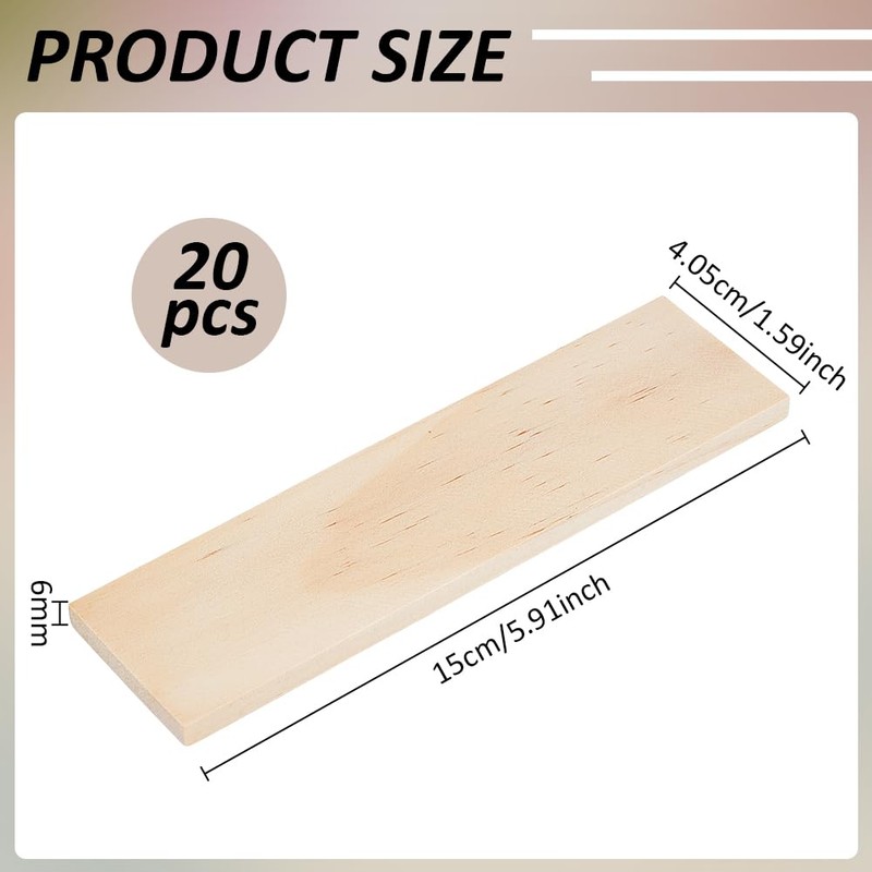 - Packaging and Size--You will receive 20 pcs wooden rectangular slices. They are approximately 150mm/5.9 inches in length, 40.5mm/1.6 inches in width, and 6mm/0.23 inches in thickness