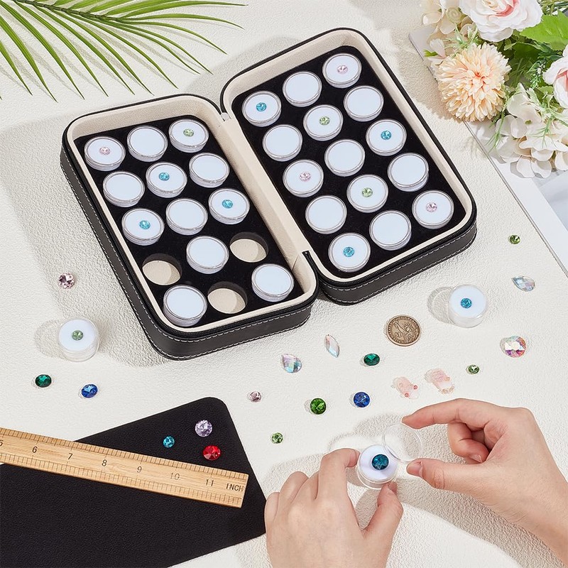 - Package Included: 30 pcs clear round gem jars, each jar is 3.2x1.75cm, the quantity is sufficient for your general use. The closed leather box is 22x13x6.5cm