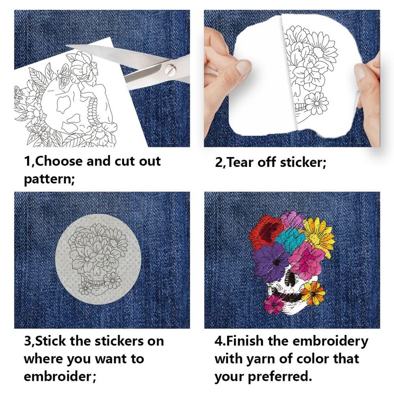 • 12 Pattern Combinations : The embroidery stabiliser contains skull, flower pattern combinations that can be mixed and matched, allowing you to create unique and exquisite patterns on fabric, adding a sophisticated and lively touch to your work.