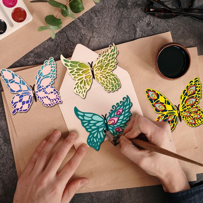 - [Exquisite Patterns]- The cutting stencil is designed with 2 pcs peacock plume butterflies patterns, freely combine these patterns according to your preferences and designs for decorating your items