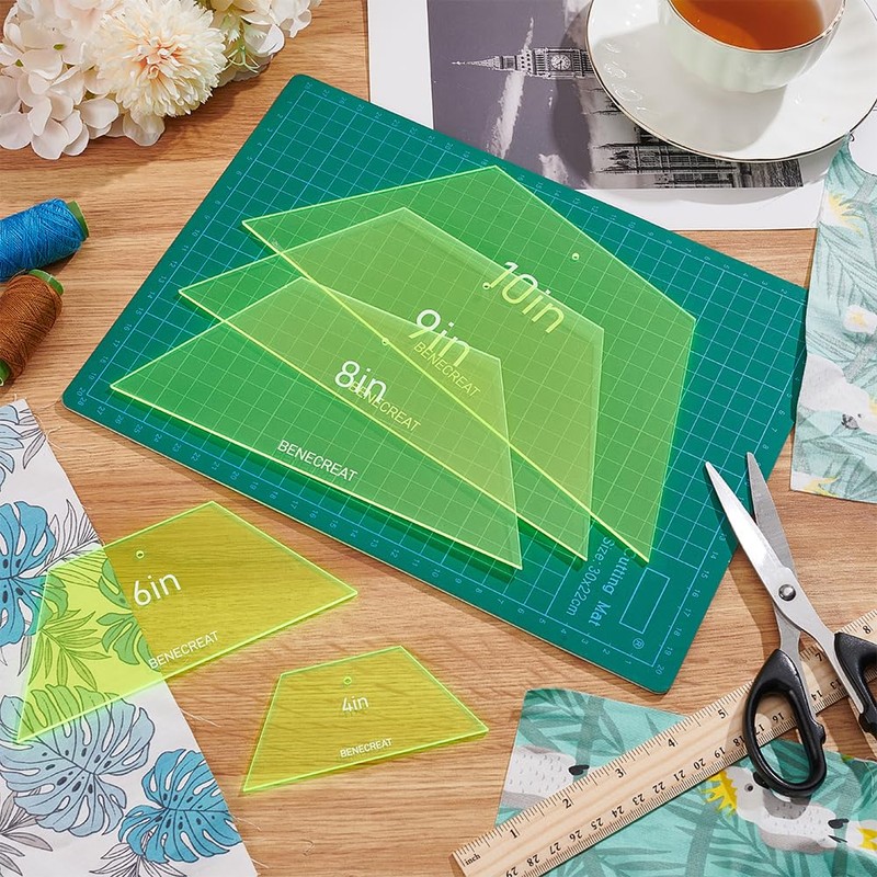 - Package Included: 5 sizes trapezoid quilting template sets, size: 4/6/8/9/10 inch (45x107mm; 67x154mm; 89x205mm; 112x255mm;100x230mm), 2.5mm thick, hole: 2mm. Various sizes can better meet your daily handicraft needs.